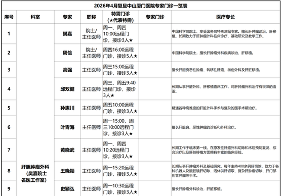 湖里十大医院4月专家门诊信息