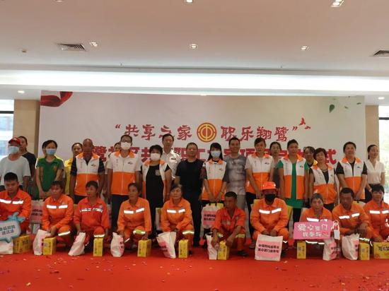 6月16日下午,翔鹭社区居委会联合开心社工服务中心组织社区家庭女性举办了“幸福翔妈送清凉,爱心厦门我参与”端午节慰问特殊岗位人员活动。现场不仅为环卫工人、垃圾分类督导员等一线岗位工人们准备了精彩的文艺节目汇演,还有社区家庭女性及爱心商家为辖区内50位环卫工人及垃圾分类督导员们精心准备的爱心礼包,爱心礼包内有社区家庭女性志愿者亲手制作的50份手工皂、360个粽子,还有菊花茶、毛巾以及防蚊水、痱子粉、营养保健品等礼物,感谢这些一线工人在炎热的天气依然坚守岗位,奋战在社区的一线,为美好家园洒下辛勤的汗水。全场来宾一起为这些代表们送上“爱的鼓励”,活动现场洋溢着浓浓温情。
