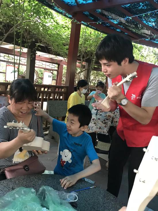 五月的第三个星期日是全国助残日,为了贯彻落实好爱心厦门五大行动,在社区加强关爱残疾人工作的社会宣传,大力弘扬人道主义精神,普及“平等、参与、共享”的残疾人观,创造友爱、尊重的睦邻氛围,翔鹭社区家庭女性志愿者们在社区和社工的帮助下,组织开展了“520“我们同唱一首爱的歌”尤克里里DIY亲子活动。邀请8组社区家庭女性携孩子一起进行尤克里里DIY,共同学唱一首爱的歌。通过让正常家庭和残疾儿童家庭在制作手工的过程中加强交流和融合,让残疾儿童感受到平等的关怀和爱护,同时为这些特殊家庭的女性创造一个交流沟通的平台,让她们不再感受到孤单,得到支持和帮助。