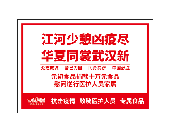 “江河共憩凶疫尽,华夏同裳武汉新。”元初食品总裁陈启明通过此次捐赠善举,表达了企业的衷心祝愿:“在这个特殊的抗击疫情的战斗中,感谢一线医护人员们的义无反顾、牺牲付出,也真诚希望他们都平安归来!”