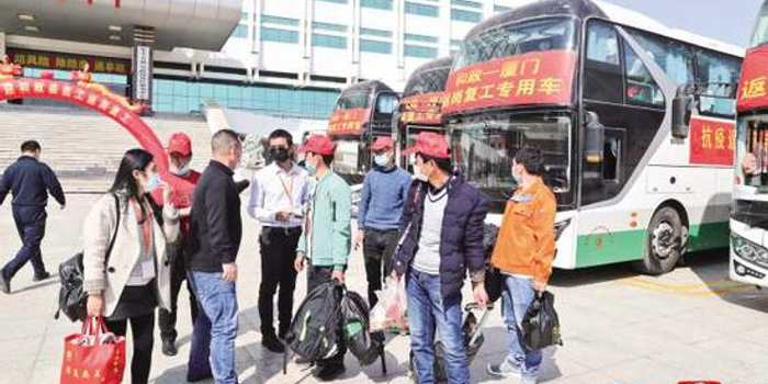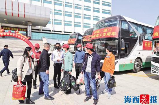 厦门组织包车从省外接回员工。记者唐光峰摄