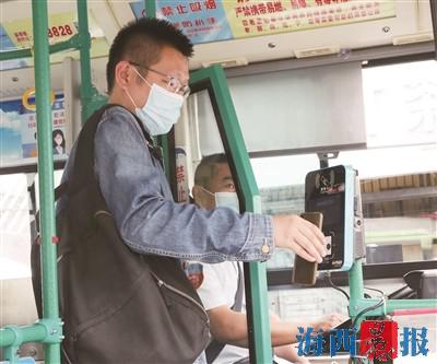 使用扫码乘车功能,市民可以实现先乘车后付费。记者唐光峰摄