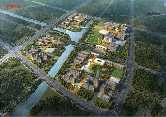 阳光学院滨海校区选址于长乐滨海新城西北角,总用地面积38.54万平方米,计容总建筑面积30.83万平方米,建成后可容纳学生11000人。校区依照传承、创新、学院派的理念,采用中国传统院落围合设计,打造形成“一核,四园”的总体功能布局。