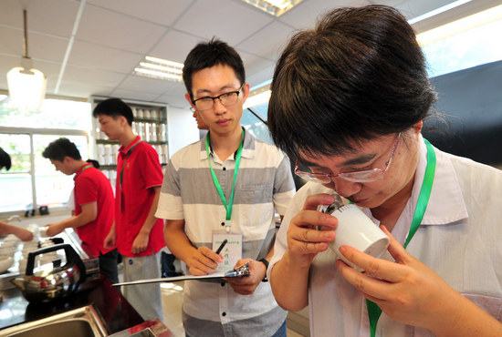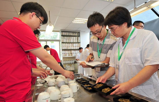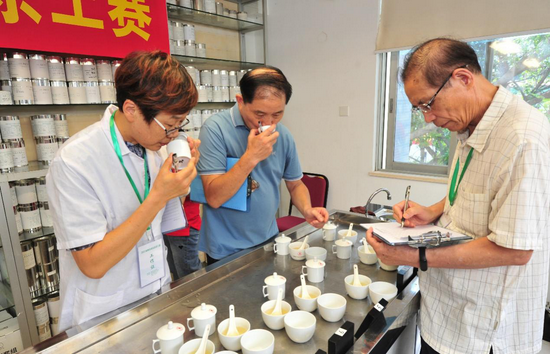 为确保赛事活动的公平性和权威性,从专家库随机邀请了陈金水、陈銮、张方舟、孙云、高峰、郭雅玲、罗星火、周琦、杨如兴、陈思聪等10位茶叶审评专家,根据参评茶样类别,对茶样分茶类、分外形,按照《茶叶感官审评方法》(GB/T23776-2009)进行感官密码审评。专家们通过看外形、闻香气、品滋味、察汤色、摸叶底等程序,按照评分的高低决出“茶王”6名和“金奖”18名。