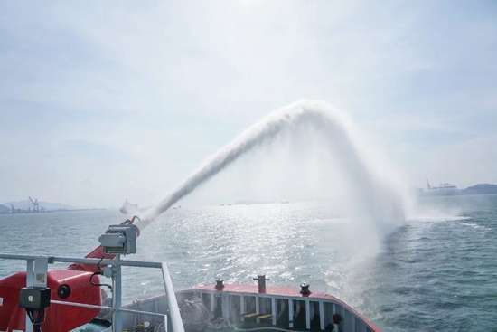 消防水炮在海上突发船只着火的时候起到很重要的作用,水炮能抽取海水精准地对着火船只进行扑灭,远射程也能保护消防员和船舶自身的安全。