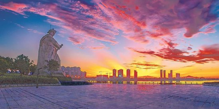 在厦门同安新城的核心区丙洲岛,一座高达17.56米的陈化成雕像巍峨矗立,雕像面朝大海,剑眉星目,手握剑柄,已经成为同安的一座地标。