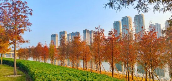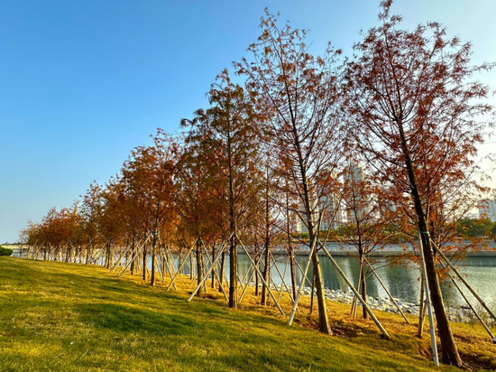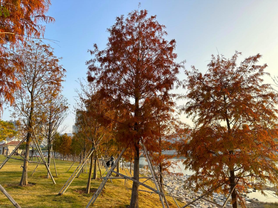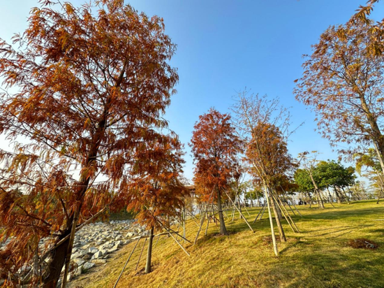 霞光辉映,层林尽染。去年植树节,在马銮湾生态三岛公园种下的落羽杉,在这个冬季披上了“盛装”,扮靓了马銮湾新城。