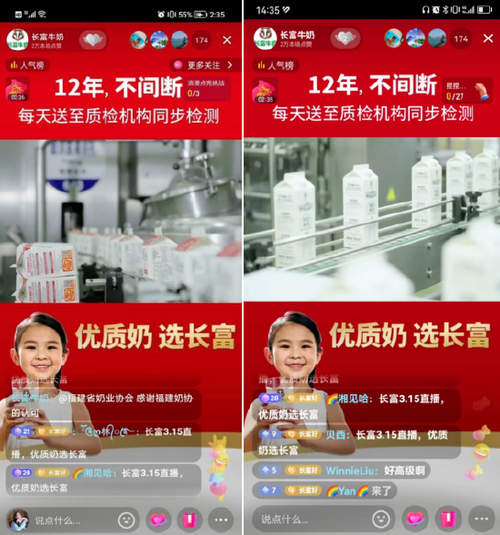 在今年的3·15消费者权益日,作为优质乳工程标杆示范企业的福建长富,就主动公开直播探厂,让消费者跟随镜头,一镜到底,见证一杯牛奶从牧场到餐桌的全过程。