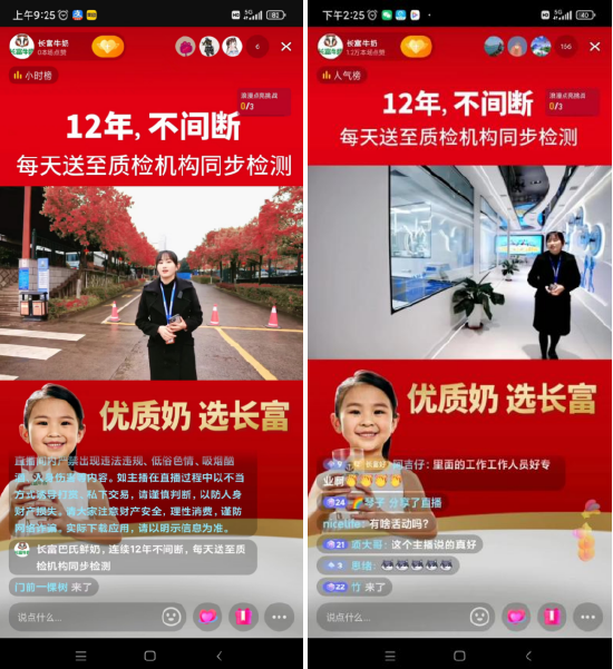 直播时,不少弹幕都问到,牛奶的安全如何保障。相关负责人自豪地进行解答:“我们长富建设有自己的质量检测中心,也是省级的技术中心,承担着长富从牧场生态、到进厂生鲜乳、原辅材料、生产加工、到成品的全流程闭环检测工作,并与第三方机构联动,确保每一盒牛奶都可追踪溯源,保障用户喝到安全、优质、新鲜、营养的巴氏鲜奶。”