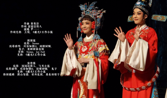 “君霄组合”以清新的面貌,隽永的画风吸引到不少“初恋追星”的粉丝,其中不乏一些来自文艺界和新社会阶层人士。来自不同领域的粉丝群体在“追戏”的同时,也与演员一路同行,各显其能助力推广越剧和其他地方戏曲,在春末夏初掀起了戏曲复兴“小热潮”。 近日,福建籍音乐制作人黄奕彭受邀与在深圳工作的倪莫等粉丝隔空合作,共同创作了国风越剧推广MV《越光》。该mv在新浪微博、QQ音乐、哔哩哔哩、小红书等平台全网推出,短短两三天里浏览量已接近30万,相关数据还在持续攀升。《越光》MV以“春生夏长、秋收冬藏”比喻戏曲演员的成长,并大量使用了越剧常用意象来呈现越剧水秀折扇轻扬之潇洒、才子佳人如梦之美好。MV以陈丽君、李云霄两位演员的视角出发,以电影镜头般的画面展现了越剧演员从学艺、练功、登台、亮相,最终在艺术的海洋里激荡起了属于越剧的千层浪,赢得了满堂喝彩的全过程。
