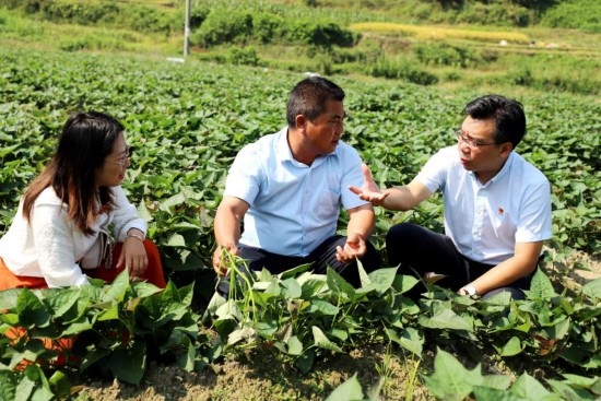 图:驻村书记与乡镇干部对接通过普惠金融谋发展促增收