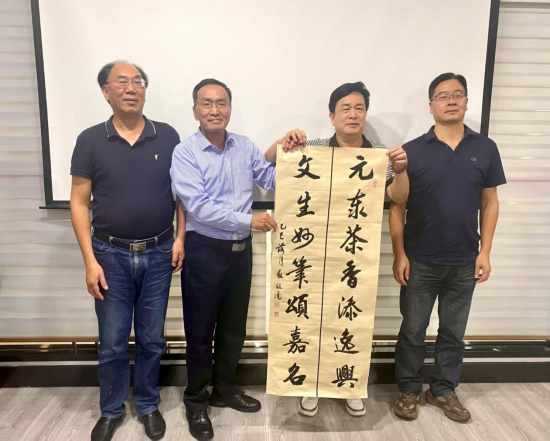讲坛最后,福清市历史名人名家研究会副会长、书法家严毅彪及玉融公证处陈彬主任,分别赠予元泰君“元泰茶香添逸兴,文生妙笔颂嘉名”墨宝及玉融公证处的茶具礼盒。元泰君赠与现场嘉宾中国红茶地图、茶书、花香红茶等礼品。