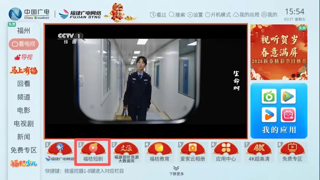 打开电视刷短剧!到“福桔短剧”专区畅点海量免费微短剧