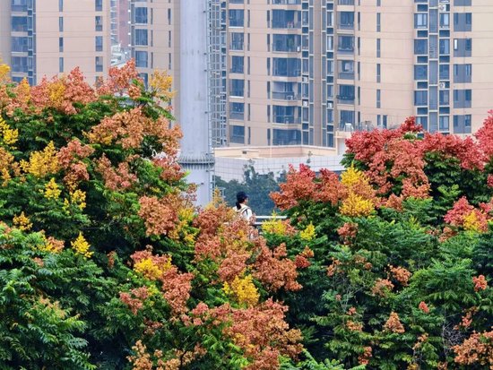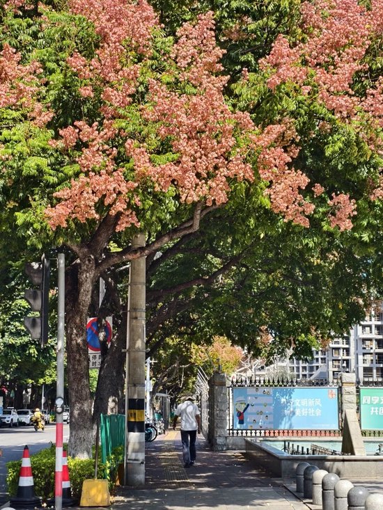 道路两旁的台湾栾树在 “招手”