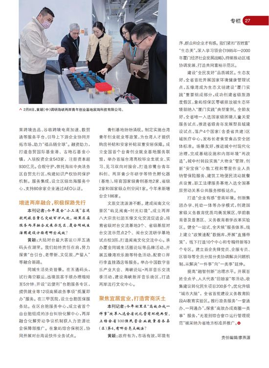 《海峡通讯》记者:今年厦金“小三通”客运航线旅客量已突破百万人次。湖里区在服务两岸融合发展示范区、厦金同城生活圈建设方面有哪些成效?