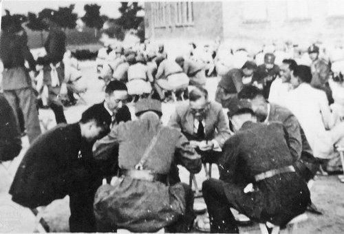 陈嘉庚在慰劳期间与将士们一起用餐。