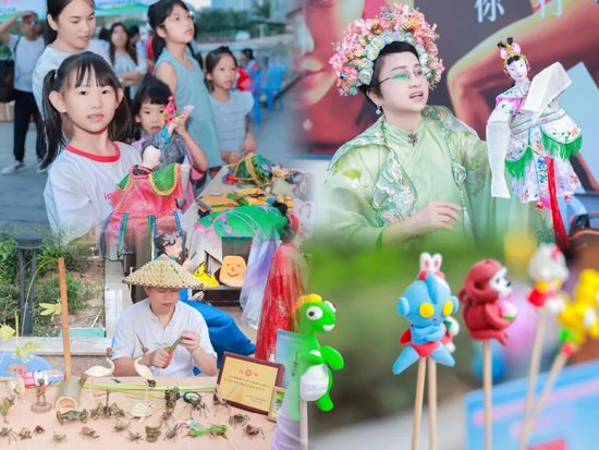 舞台周边非遗体验区人气尤旺,小摊前排起长队。小朋友或驻足布袋戏展位看木偶跃动展笑颜,或围泥人台目送彩泥化栩栩萌物,惊叹连连。