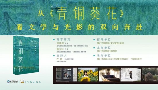 本次活动由厦门市湖里区文化和旅游局指导,厦门市湖里区图书馆主办,厦门书香阳光文化传播有限公司与作家出版社联合承办。特邀北京大学博雅讲席教授、原著作者曹文轩,金马奖终身成就奖获得者、电影《青铜葵花》导演陈坤厚亲临现场,儿童文学作家、作家出版社编审左眩担任此次对话主持人。活动以 “文学阅读+影视艺术”为核心,将为现场观众呈现一场关于成长、温暖与艺术的美好邂逅。