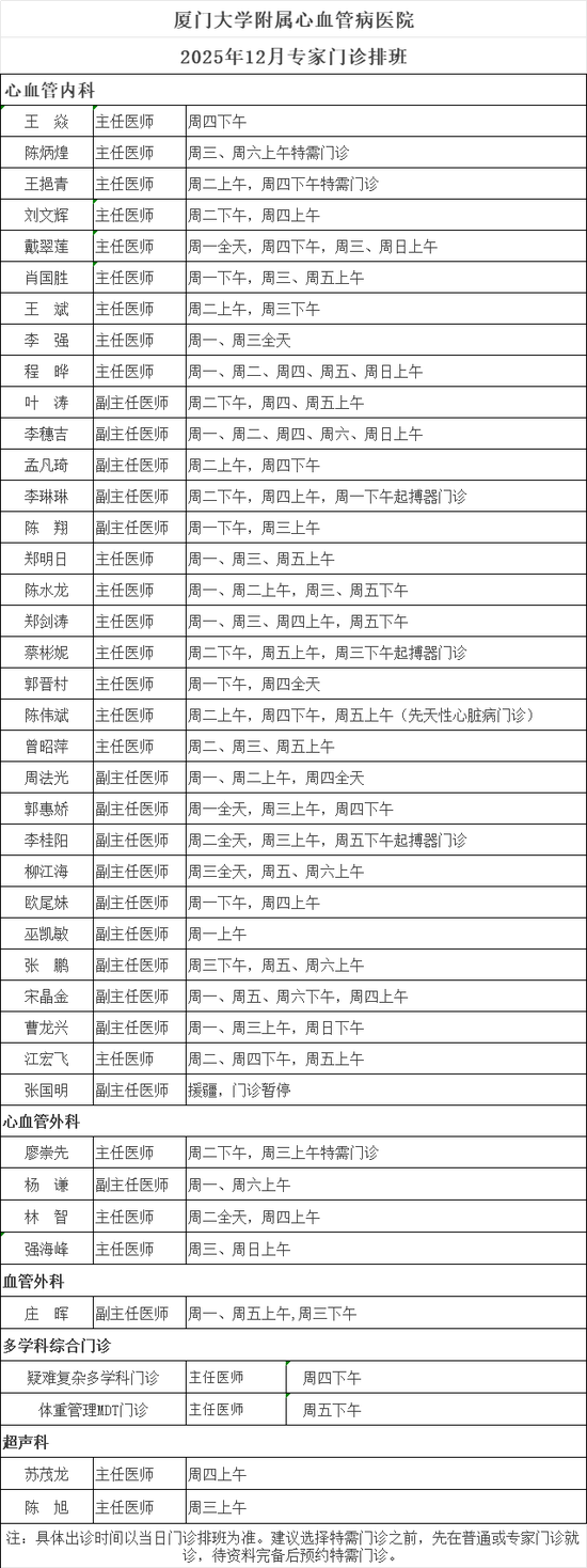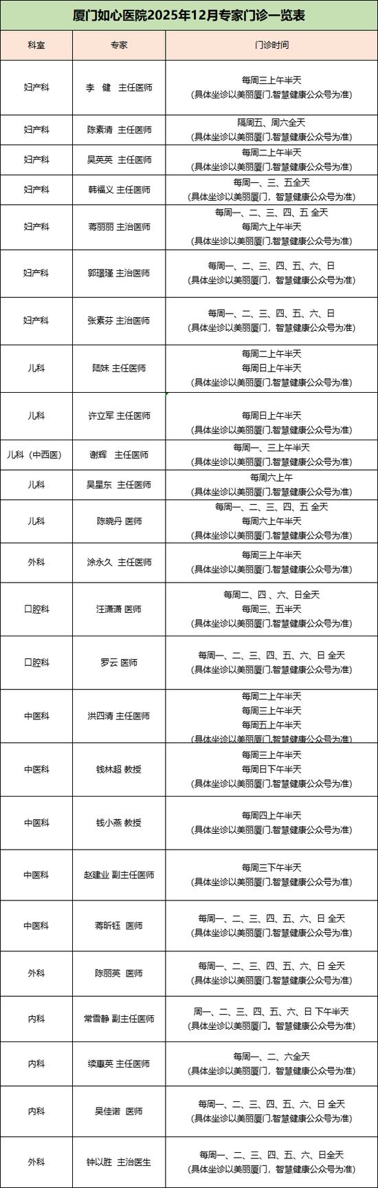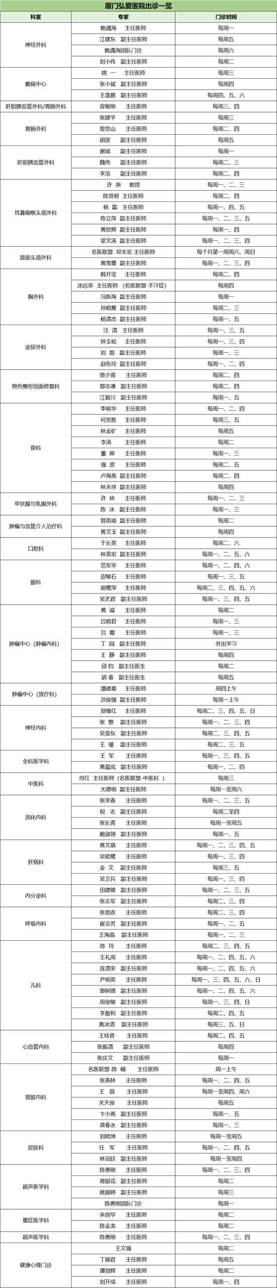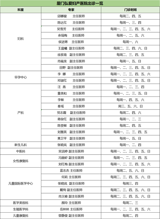 *关注厦门市湖里区妇幼保健院公众号持续关注每周排班更新。