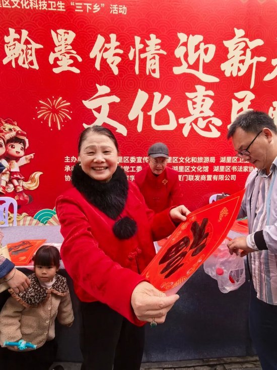 连续四年,湖里区书法家协会会长庄德义带领近200名会员参与湖里区义务书写春联活动,他坦言:“每一年都能感受到社区居民对写春联活动的期待与喜爱,我们也希望能把最美好的祝愿送到社区、送到百姓家中,也送到大家心里。”