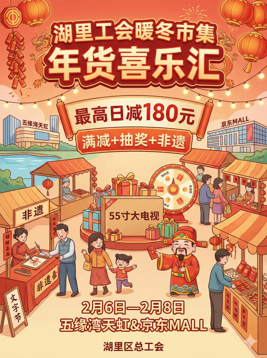 2月6日至8日,“工会暖冬市集·年货喜乐汇”暨2026年“益企来月悦购”厦门工会集市湖里专场将在五缘湾天虹&京东MALL火热开市!🔥