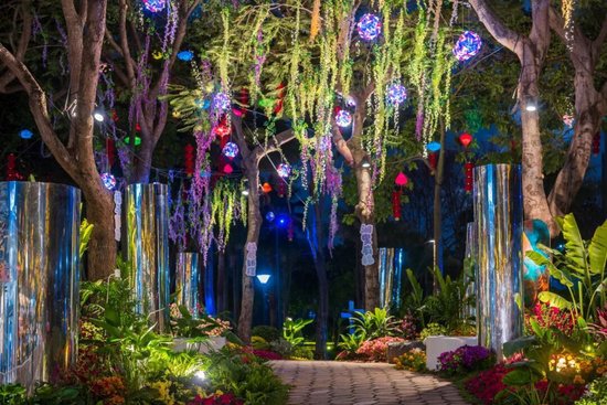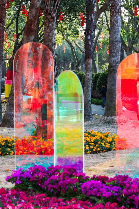 形成“花林叠瀑、光影穿梭”视觉奇观