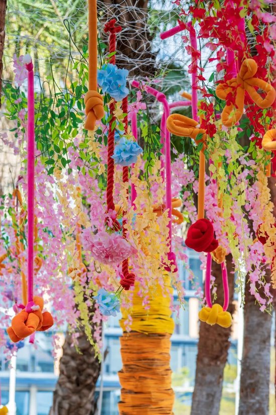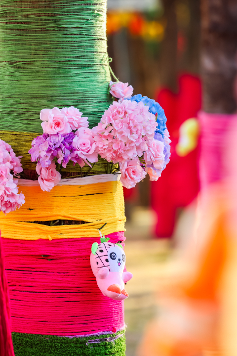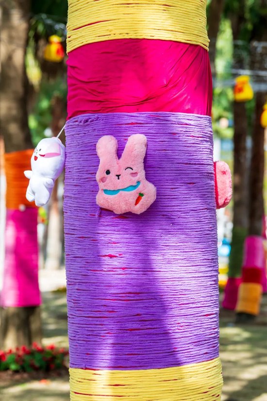 我们用彩色的毛线手工缠绕树干