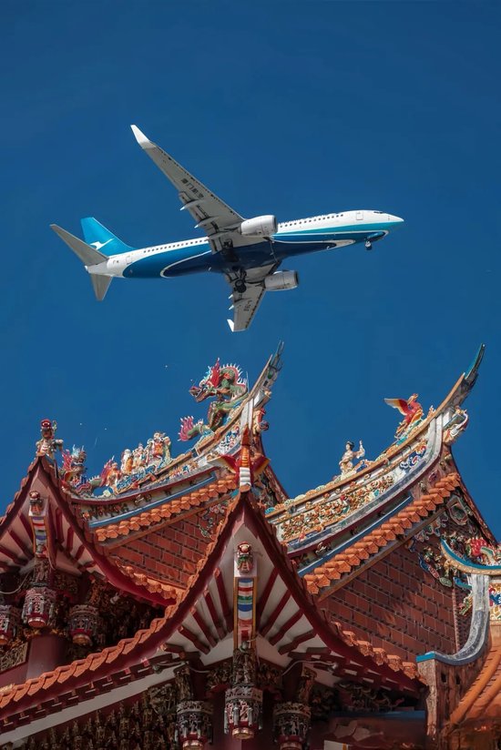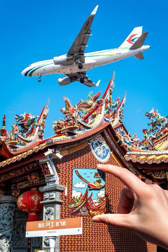 还能拍到飞机与古庙同框的震撼画面