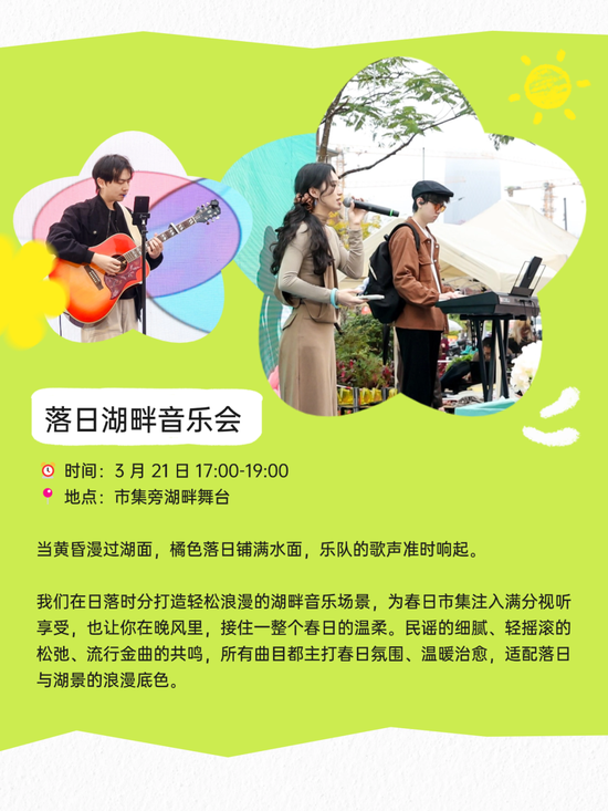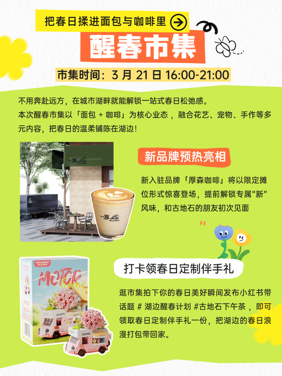 航空古地石广场‘湖边醒春计划’,3月21日(周六)正式启幕!从午后到深夜,醒春市集、萌宠运动会、A-Lin专场街演、落日音乐会轮番上演,更有咖啡半价、限定周边、免费摄影福利全线拉满。