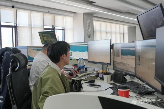 在距离5号泊位不远的厦门国际航运科创中心,吴建良把我们带到桥吊远程控制台前。操作大屏幕上,海天码头13号桥吊的作业情况实时回传——这是国内首个半自动化桥吊远程控制项目。