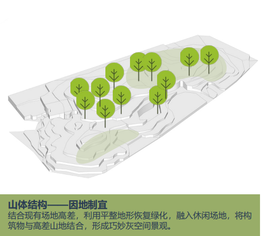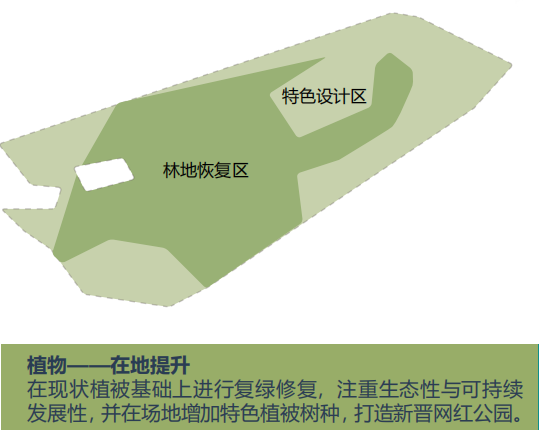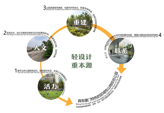 ——加强公园与城市的脉络链接,恢复场地林地,坚持可持续发展战略。