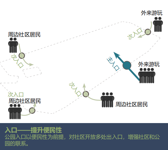 ——对公园的入口和边界调整成开放的循环体系,增强公园的开放性。