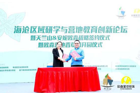 随后,在与会嘉宾的共同见证下,安妮欧森(北京)教育科技有限公司与天竺山旅游风景区投资开发有限公司签署战略合作协议,未来将共同致力于在厦门推动研学实践与森林研学、乡村振兴的跨界合作。