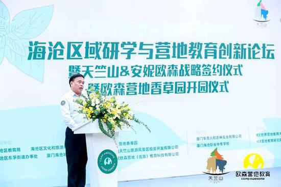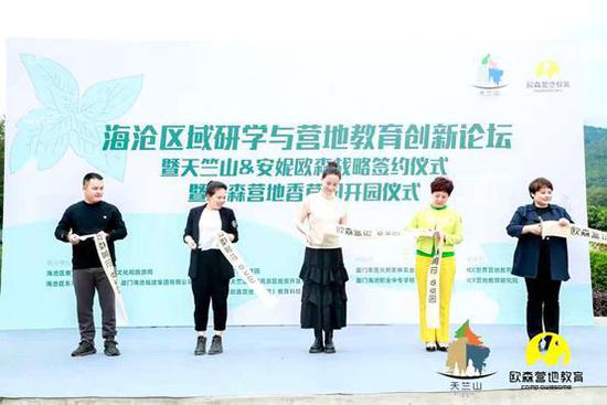 11月14日上午,由海沧区教育局、海沧区文化和旅游局、海沧区东孚街道办事处、厦门海沧城建集团有限公司联合指导,欧森营地香草园、天竺山旅游投资有限公司与安妮欧森(北京)教育科技有限公司共同主办的“2020海沧区域研学与营地教育创新论坛”在海沧区东孚街道香草园正式开幕。