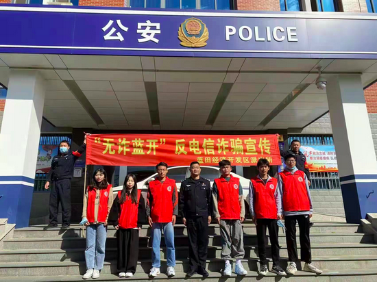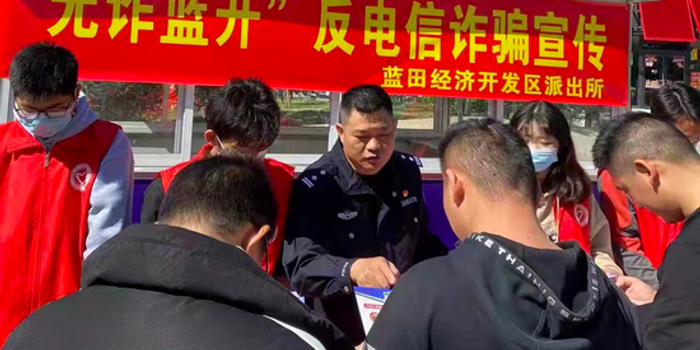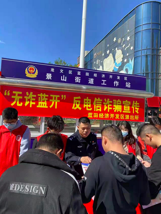 11月10日至11日期间,蓝田开发区派出所社区民警带领“护企110”及社区警务人员深入辖区内朝阳农贸市场及宝龙广场等流动人员密集场所开展“无诈蓝开”反电信诈骗宣传活动。宣传人员来到各个宣传点前,在显眼位置摆放精心制作的反诈宣传标语牌,并向周边群众普及各项反诈技能。“致富十年功,诈骗一场空。”“天上不会掉馅饼,涉钱勿轻信。””白富美,高富帅,网上和你谈恋爱,投资、赌博来钱快,不是骗子才奇怪。”……一个个幽默诙谐的反诈口号,逗得现场群众哈哈大笑。群众竖起大拇指纷纷表示,“每句话都很接地气,立马就记住了,派出所同志们太用心了。”