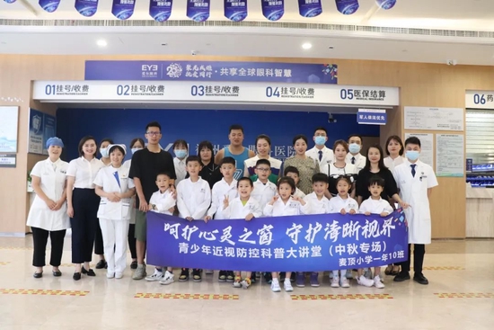 9月6日下午,麦顶小学一年级10多位学生代表,在家委妈妈们的精心组织和带领下来到福州爱尔眼科医院,开展“呵护心灵之窗,守护清晰视界——青少年近视防控科普大讲堂(中秋专场)”活动。