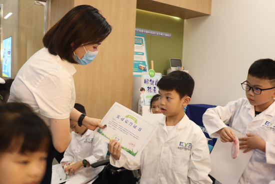完成职业体验后,孩子们还获得了福州爱尔眼科医院颁发的《眼科小医生实习荣誉证书》。