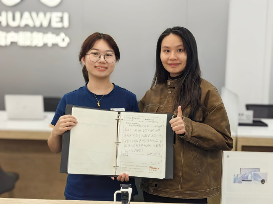 大年初六的午后,陈女士带着一部屏碎的手机匆匆走进店里。她的脸上写满了焦虑和不安,原来她的手机在新年游玩时不慎掉到了水泥地上,导致无法正常使用。小叶一边安慰女士,一边接过手机进行检查。她迅速确认了问题所在,并告知陈女士可以放心,他们会尽快帮助她解决问题。为了让她在等待期间不感到无聊和焦虑,小叶还邀请她参加门店举办的写福活动,在轻松愉快的氛围中,陈女士逐渐放下了心中的焦虑,她挥毫泼墨,写下了一副寓意吉祥的福字。维修完成后,小叶还细心地为陈女士的手机贴膜、清洁和保养,确保手机焕然一新。当陈女士拿到手机时,她的脸上露出了惊喜和感激的笑容。陈女士在离开前,特地在门店留言簿上写下感谢:“感谢华为服务店,感谢小叶的热情服务,让我在新年感受到了不一样的温暖。”
