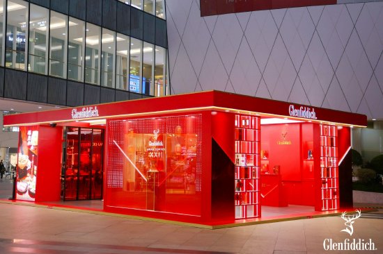 空降厦门SM新生活广场二期,格兰菲迪璀璨福至快闪空间带着福禄呈祥的祝福,盛大启幕。展墙上高挂的红灯笼播撒喜庆祥和,格兰菲迪标志性的鹿头雄踞吧台中央,传递着“福鹿来,福气来”的美好寓意。