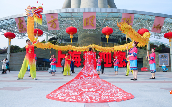 为吸引更多上海市民游客来龙岩文化体验、旅游观光、休闲度假,1月8 日龙岩文旅艺术小分队还在上海东方明珠、豫园、外滩等市民及游客聚集地,以非遗大鼓凉伞、提线木偶戏、客家扁担赴圩集市、客家祝酒歌、客家舞龙等快闪路演艺术形式,为上海市民及游客带去了龙岩别具一格的春节文化盛宴,激发大家前往龙岩旅游的愿望,持续做深做热“百万阿拉游龙岩”文旅品牌。