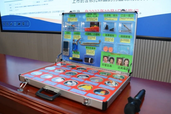 为增强宣传的直观性,省未戒所民警通过仿真模型进行现场展示,让同学们零距离观察毒品、列管药品的各种伪装形态,认识其隐蔽性和危害性。这种沉浸式、互动式的讲解方式,有效打破了传统宣讲的局限,极大提升了宣传教育的吸引力和感染力,使禁毒与药品安全知识入脑入心。