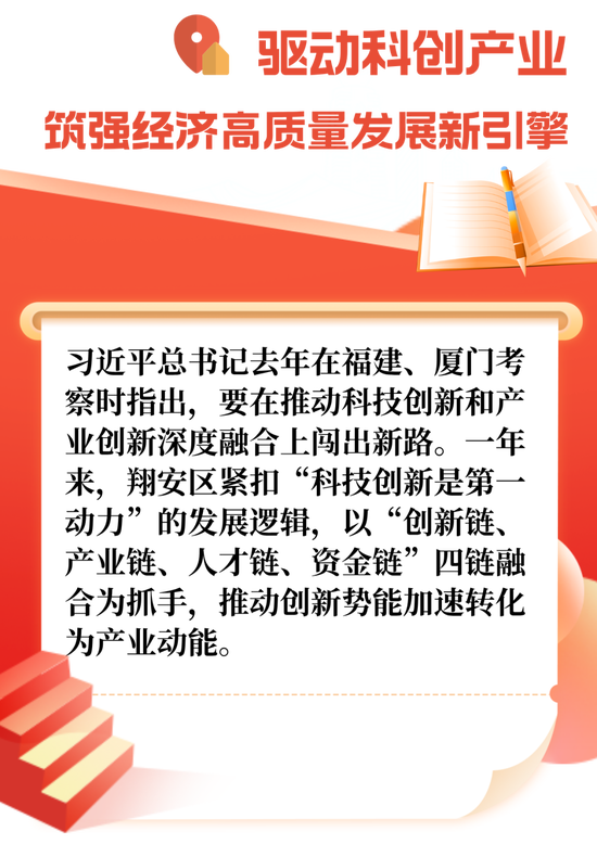 牢记嘱托,踔厉奋发。一年来,翔安区深学笃行、狠抓落实,持续深化拓展“深学争优、敢为争先、实干争效”行动,在科创产业融合、改革开放深化、城乡融合发展、文化赋能提升等四大领域精准发力,交出了一份展现翔安担当、体现翔安作为的亮眼答卷——