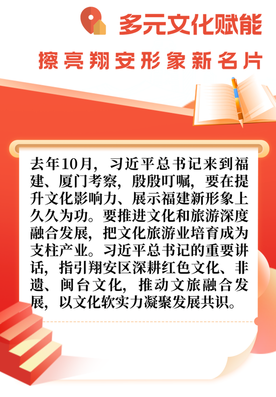 重大活动的加持,让翔安的文化影响力不断扩大。依托苏迪曼杯国际赛事、周杰伦演唱会等重大活动,翔安区一年来举办各类展会、赛事超110场,实现“周周有活动、月月有赛事”,旅游总收入、接待游客人数分别同比增长30.01%、25.84%,文旅产业成为翔安经济增长的“新支柱”。文化魅力的传播也不止于线下,今年以来翔安区在央视亮相50条次,4次登上《新闻联播》,生动讲述“翔安故事”,展现高质量发展良好形象。