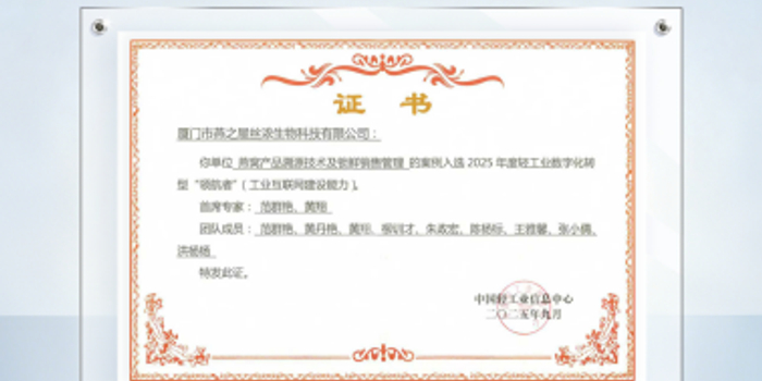 燕之屋“燕窝产品溯源技术及锁鲜销售管理”案例入选2025年度轻工业数字化转型“领航者”(工业互联网建设能力)证书