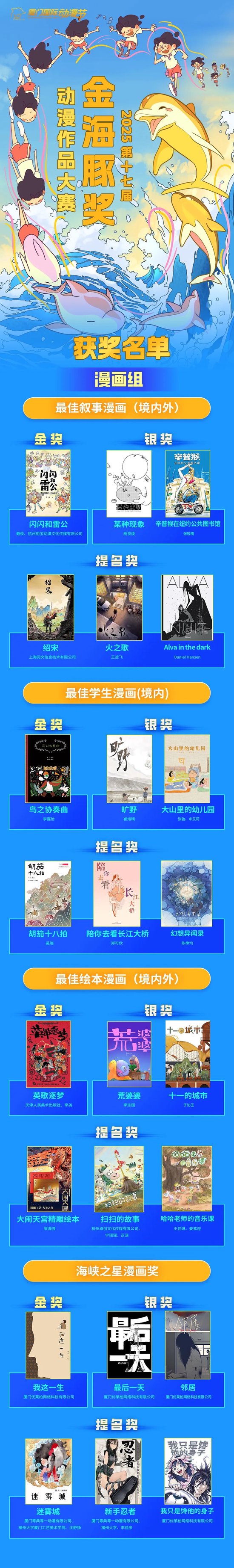 10月31日,2025第十七届厦门国际动漫节“金海豚奖”颁奖仪式在集美举行。包括《哪吒之魔童闹海》《守龙者》《时间之子》在内的72部动漫作品和18部游戏作品、18部VR作品,从全球50多个国家和地区的数千件作品中脱颖而出,摘夺奖项。