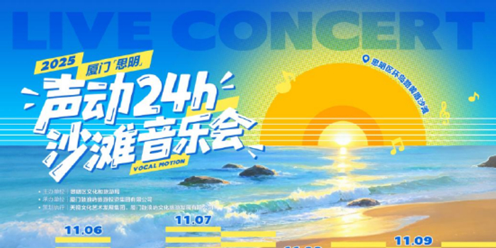 这场备受期待的音乐盛宴即将再度归来!由思明区文化和旅游局主办、厦门鼓浪屿旅游投资集团有限公司承办、天视文化艺术发展集团与厦门鼓浪屿文化旅游发展有限公司策划执行的厦门(思明)声动24h沙滩音乐会11月档活动正式官宣!本次活动将延续“滨海美学+音乐演艺+生活方式”的核心理念,以“24小时音乐不间断”与“日出音乐”为标志性特色登陆黄厝沙滩,打破传统演出时限,塑造永不落幕的滨海音乐现场,为厦门“音乐之岛”再添活力,也为市民游客奉上一场兼具治愈感与沉浸感的文化体验。