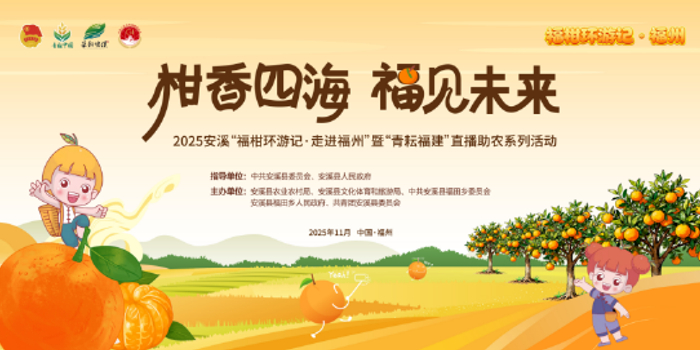 关注安溪福田带着满山的甜意,喊你吃芦柑啦!当“有福之州”的烟火,撞上“福柑之乡”的甘甜,这份跨越闽江的约定,我们筹备了整整一季——11月22日,“柑香四海 福见未来”——2025安溪“福柑环游记·走进福州”暨“青耘福建”直播助农系列活动,将在福州三坊七巷南后街暖心启幕!