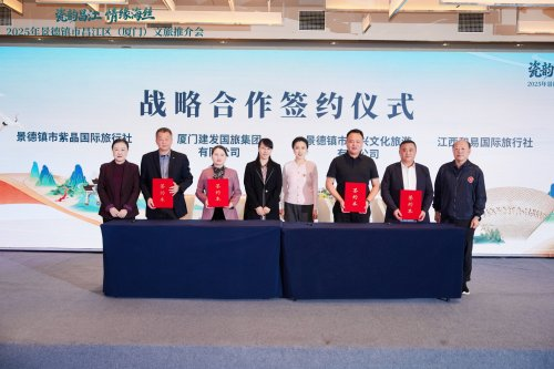 在昌江区政府分管领导、区文旅局主要领导与厦门思明区文旅局领导、厦门市旅游协会的共同见证下,厦门建发国旅集团、景德镇市国兴文化旅游有限公司、江西和易国旅、景德镇市紫晶国旅四方代表签署了战略合作协议,标志着两地文旅企业在客源互送、产品共推、市场共享方面迈出了实质性步伐。