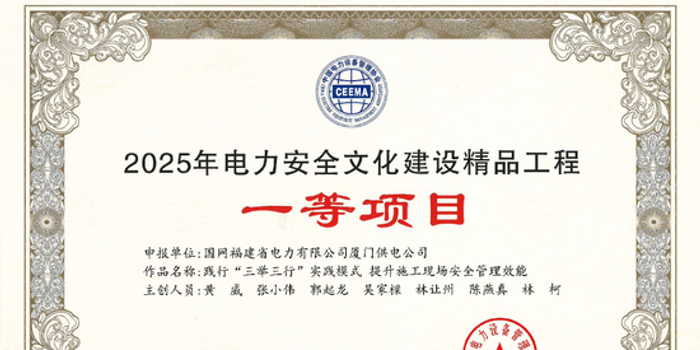 关注11月14日,中国电力设备管理协会正式公布2025年全国电力安全文化精品工程评选结果。国网厦门供电公司申报的《践行“三举三行”实践模式,提升施工现场安全管理效能》项目,从全国一千三百余家参赛单位中脱颖而出,荣获“2025年电力安全文化建设精品工程一等项目”,彰显了公司在电力安全文化建设领域的硬核实力!