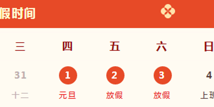 2026年元旦假期为1月1日至3日(周四至周六)共3天;1月4日(周日)调整为工作日。